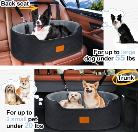 If you have a slightly larger dog that still needs a contained and comfortable travel space, this thick booster-style car seat is a solid option. Designed for medium dogs under 55lbs, it offers more space while maintaining a secure and supportive structure.
